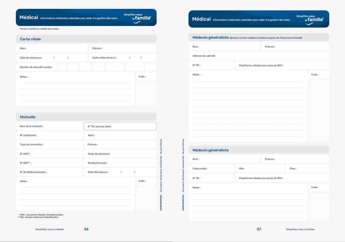 Face à l'explosion de la cybercriminalité, une version papier est un moyen sûr de ne pas se faire pirater ses données (livret à conserver dans un endroit sûr). - Une fiche A4 pour les identifiants numériques